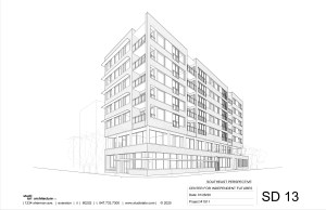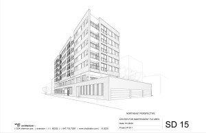 Two-story office & 20-unit residential building proposed for a site in downtown Evanston. The project would fill an enormous need for the non-profit organization, but remains unbuilt to date.