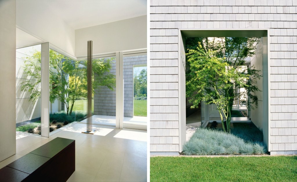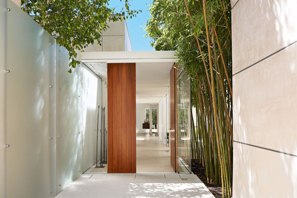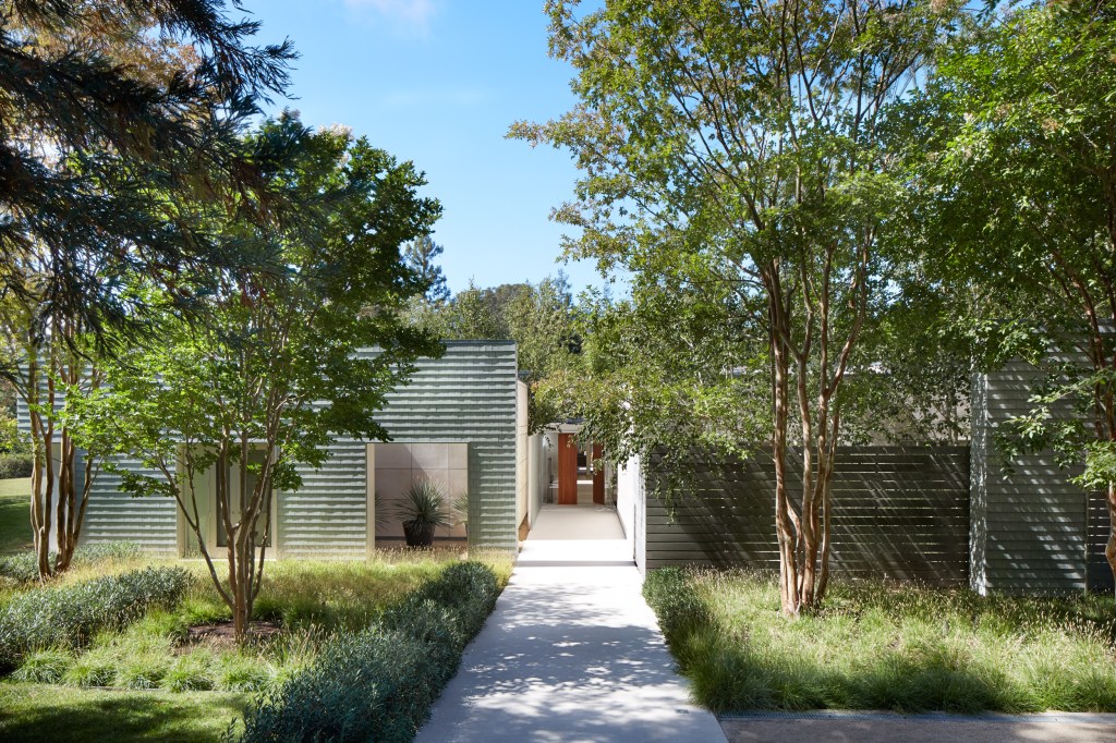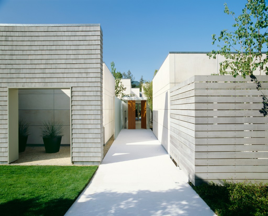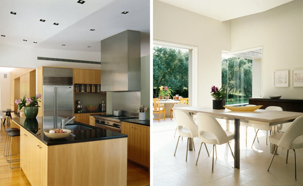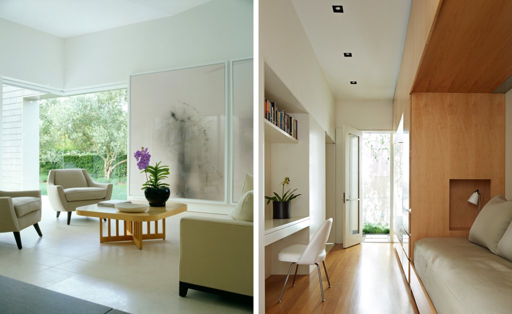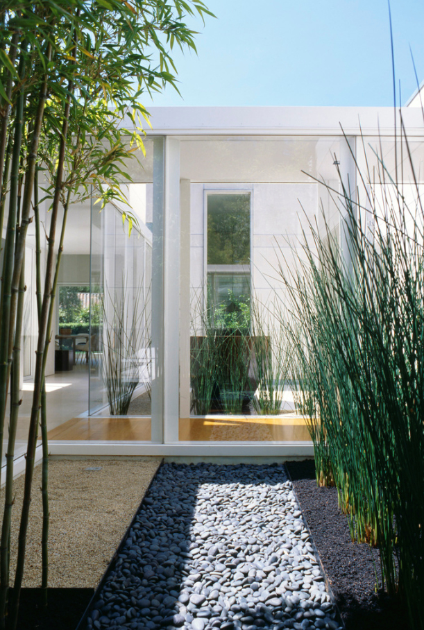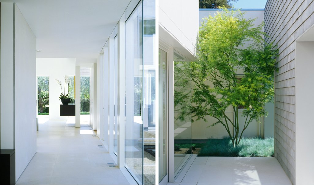 A fully accessible one-story family home where every interior space has an associated exterior space, with landscape design by Andrea Cochran; to accommodate living activities as well as an art collection, each room develops a particular qualities of light (direct, refracted, reflected).