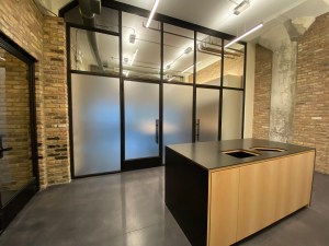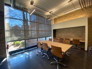 A Chicago loft building was interested in converting a vacant tenant space into a valuable shared amenity – a new conference room and electronic package locker system. Meanwhile, an elevator modernization improved service and offered an opportunity to have some fun with the interiors – new blackened steel elevator panels were etched with patent drawings highlighting the building’s unique manufacturing history.